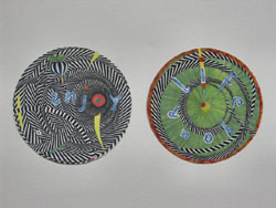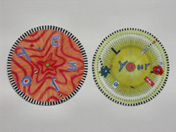 - einer tellerrunden, doppelseitig gestalteten, festgriffigen Kunstkarte, ca. Ø 13 cm